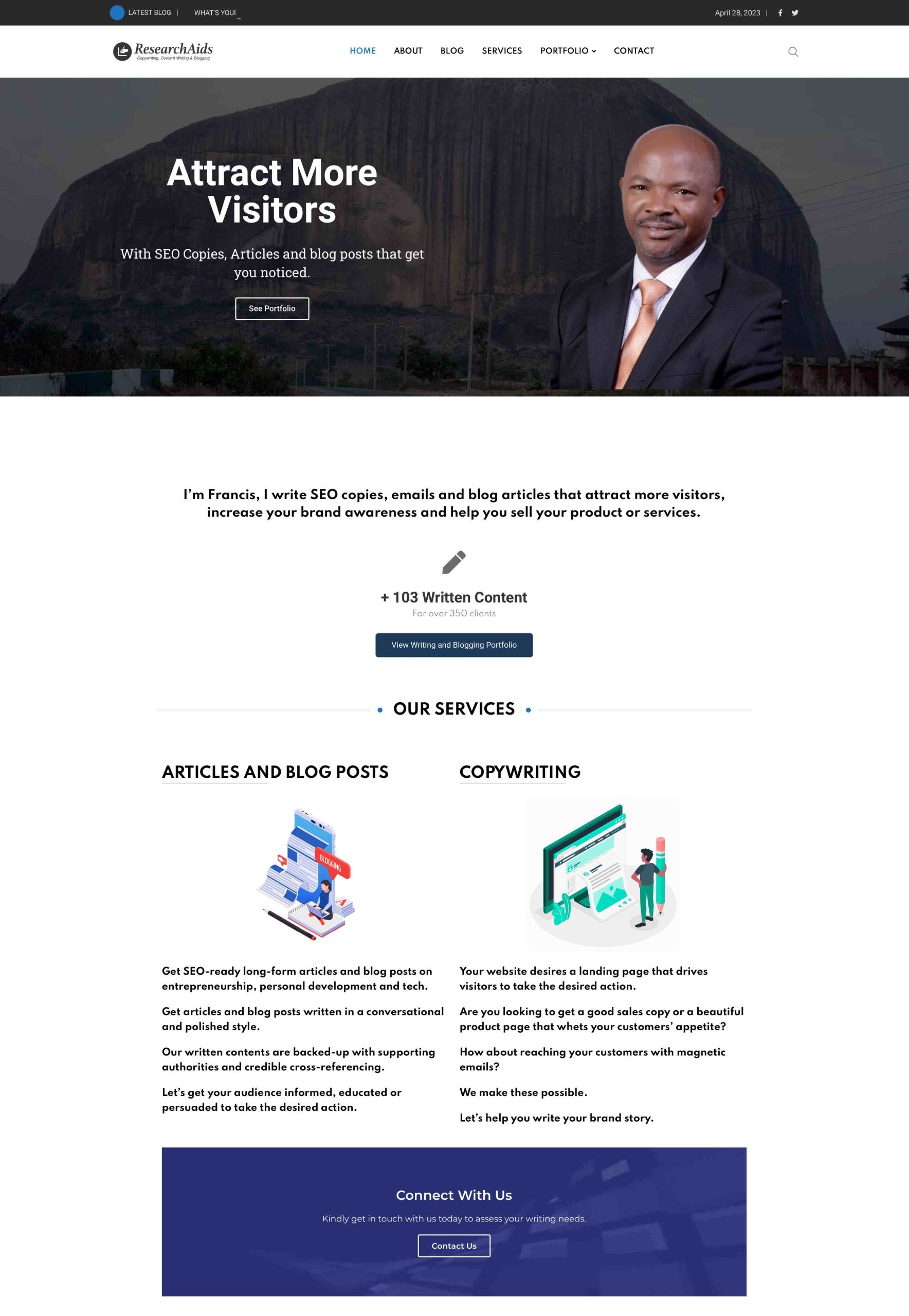 The website www.researchaids.net is a platform for blogging and copywriting services.
